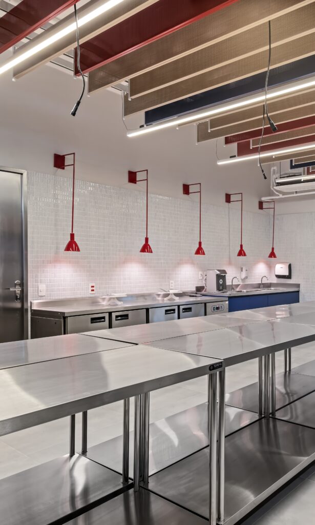 No Graded Culinary, laboratório gastronômico da Graded – The American School of São Paulo, a Zénite executou uma obra que alia funcionalidade e experiência pedagógica. O espaço conta com cozinha didática equipada, áreas de apoio práticas e infraestrutura completa, com ventilação, acústica e iluminação cuidadosamente planejadas. Os acabamentos de alta durabilidade garantem resistência ao uso intenso, enquanto a organização do ambiente favorece a vivência dos alunos em um cenário que reproduz a realidade da gastronomia profissional.